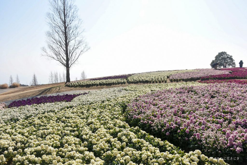 「天空の花壇」では、花さじき冬の風物詩、淡路島を代表する花の一つストックをお楽しみいただけます。