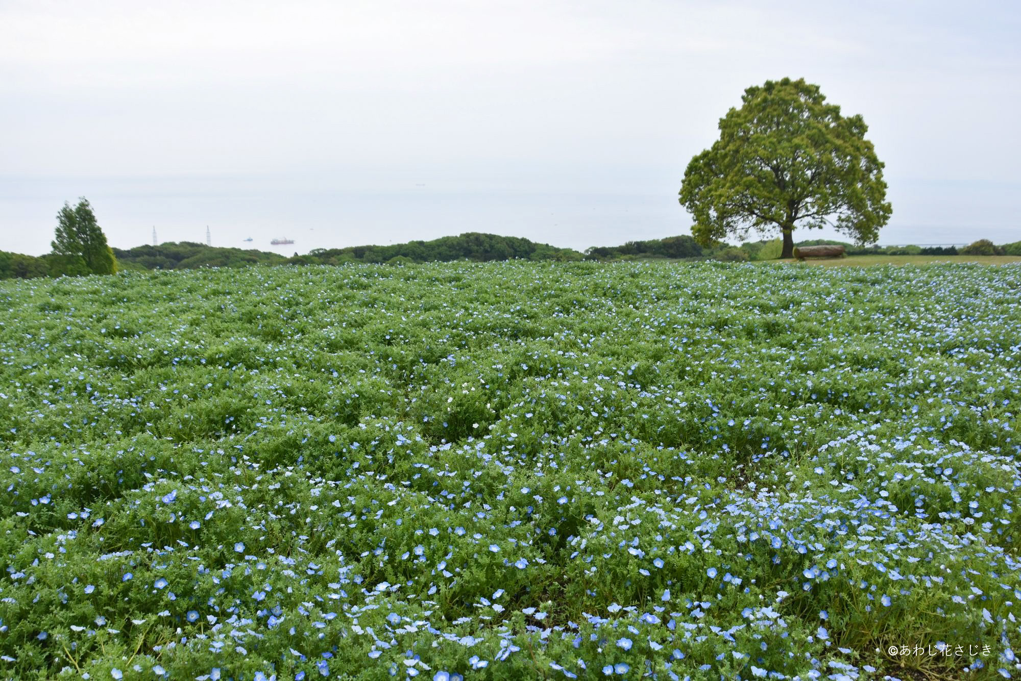 「天空の花壇」のネモフィラは日ごとに開花中で、見る場所によっては十分お楽しみいただけますが、全体では見頃にはまだ少し早い状況です。